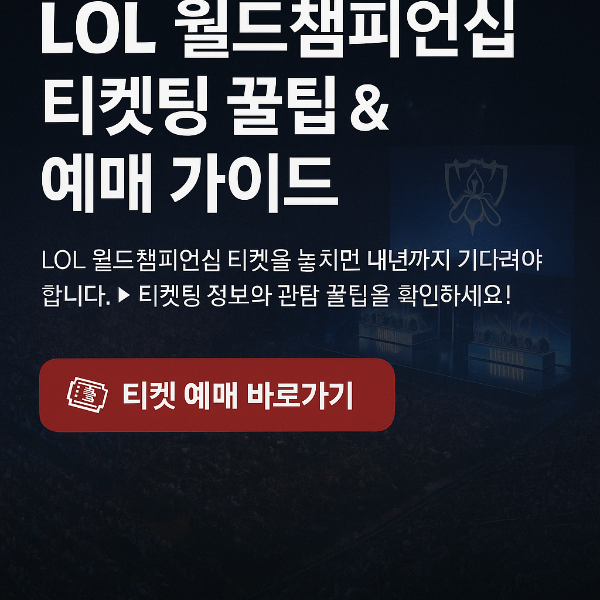 LOL 월드챔피언쉽 티켓을 놓치면 내년까지 기다려야 합니다! 매년 수십만 명이 몰리는 세계 최대 e스포츠 이벤트를 현장에서 직관할 기회를 잡으세요. 지금 바로 티켓팅 정보와 관람 꿀팁을 확인하면 성공 확률이 3배 높아집니다.